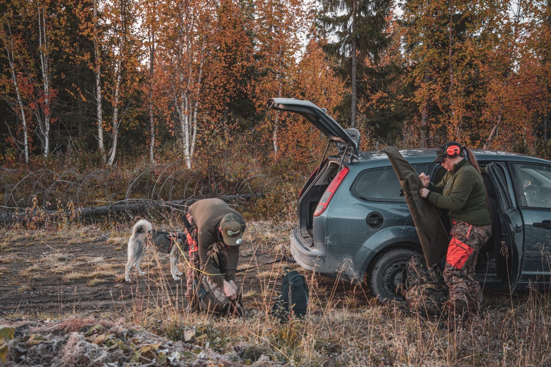 During this crisp September morning, the ground was covered in frost and the trees still bursting with colour. Maja, the hunting dog, could smell the scent of moose from kilometers away and was eager to be let off the leash.