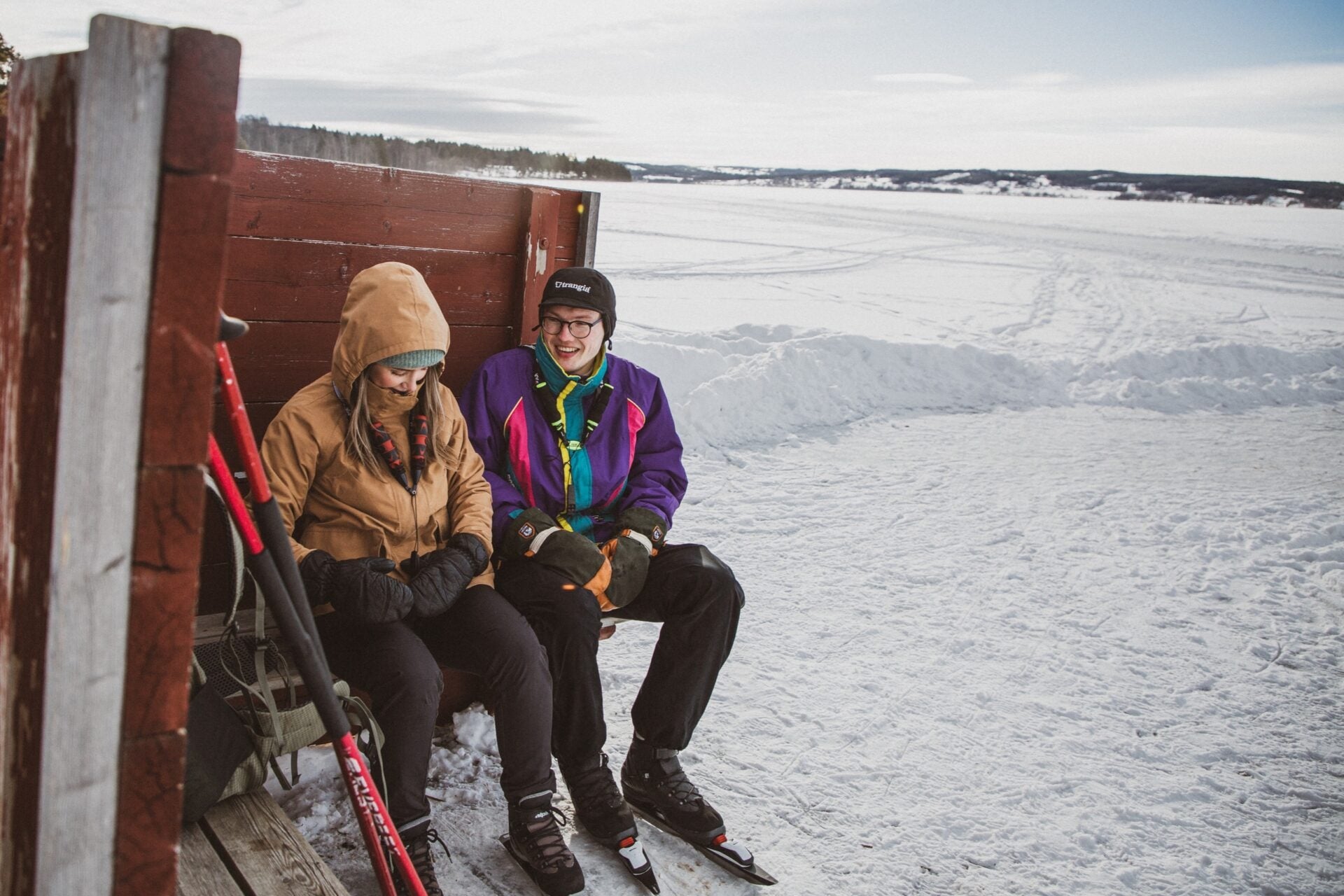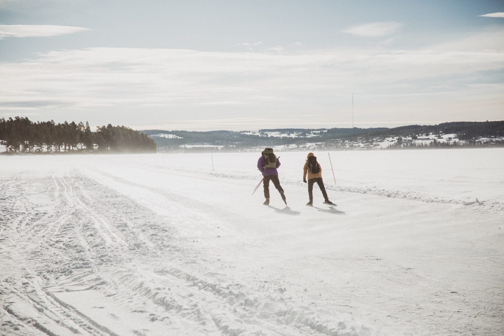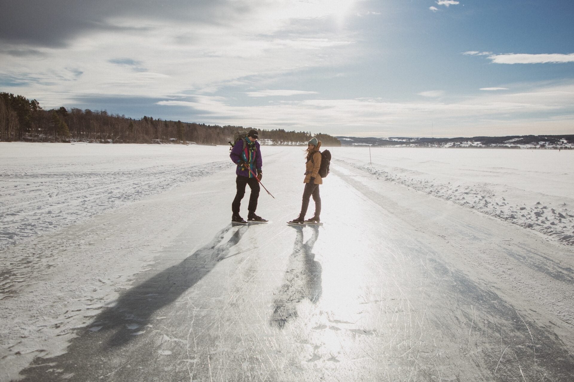 Medvinden is a 10km plowed ice track that stretches from Vinterparken in Östersund to Kungsgårdsviken on Frösön. On a sunny winter’s day the track is full of people on iceskates, skis, pushing prams and kicks but today there is more headwind than tailwind and we are almost alone on the ice. The wind is cold and the snow swirls around the legs, but it still feels like spring is on its way. The sun is starting to feels warm and it’s a good day for a skate!