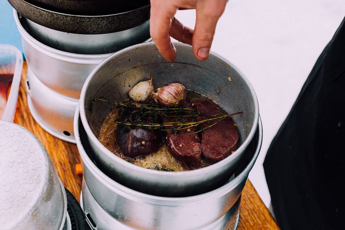 The cooking takes place outside and the weather can vary between -30 degrees celcius or plus degrees and rain, which ads difficult and often unexpected challenges.
