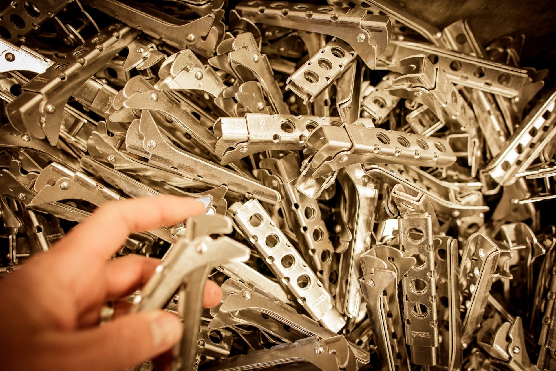HANDLES - In the automatic press, strips of the aluminum alloy are transformed into handles