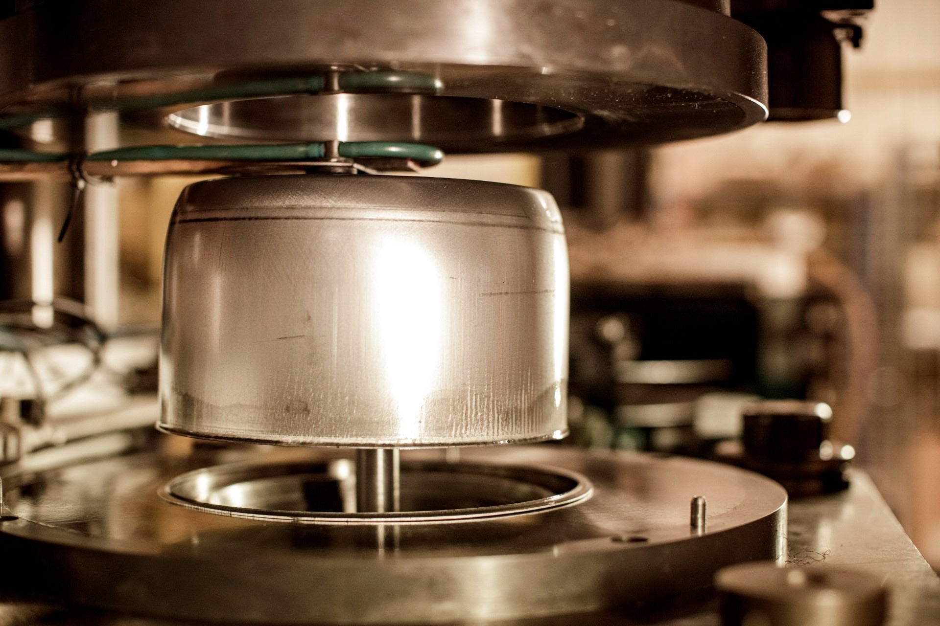 HIGH PRESSURE – The pot is shaped with 50 tons of pressure in an hydraulic press.